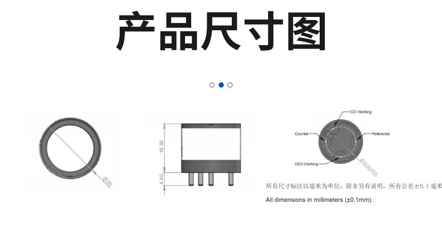 注:上述交叉灵敏度包含但不限于以上气体,该传感器可能对其他气体有响应。交叉灵敏度的数值可能随着传感器的生产批次和测试环境的不同而变化,本数据表仅作为参考,使用之前需要用检测气体作为标准气体进行标定。如果用交叉敏感气体进行标定,不保证标定和测量的准确性。